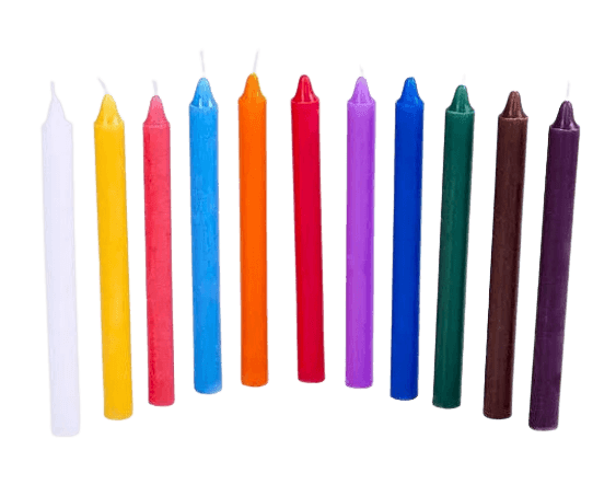 As velas de parafina coloridas são usadas principalmente para fins decorativos, meditação, yoga, aroma terapia e cerimônias espirituais. Elas também podem ser usadas para simbolizar intenções e desejos em rituais de magia ou magia de vela.